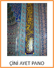 10.000 m2 alan içinde faaliyet gösteren Evliya Çelebi Çini Fabrikası’ nın en önemli çalışma alanı Camilerimizin Çini işleridir. Mihrap’ tan Minber’ e Sütunlardan Kürsüye, Mihrap yazılarından son cemaat yerindeki süsleme ve Dua’ lara kadar her türlü konuda Çini, Evliya Çelebi Çini Fabrikasında üretilmekte olup ülkemizin dört bir yanındaki Cami’ ler bu yüksek düzeydeki sanat ürünleri ile bezenmektedir.